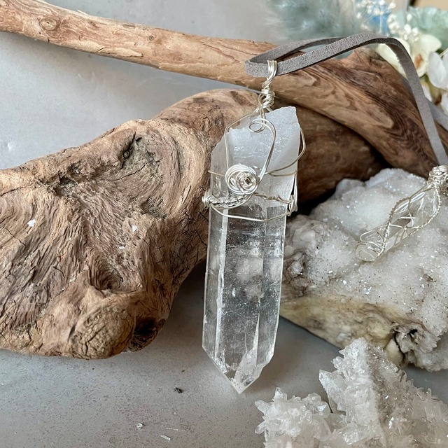 ヒマラヤクル渓谷産のナチュラルポイント1点ものをシンプルにワイヤージュエリーとしました。 可愛過ぎず、存在感のあるものになっています。 ヒマラヤより直輸入された、研磨されていない純粋なる天然のお石のため、1点ものとなっています。 インドヒマラヤ産クリスタル ワイヤーを含め約8.5cm 48g 簡易的なスエード紐をお付けいたします。 *サイズは目安です。大体の大きさをイメージするのにお役立てください。 【注意事項】 *天然の物です。写真に写っていないクラックや、欠け、含有物等がある事は予めご了承ください。 *お客様都合による返品、返金対応は出来かねます。予めご了承ください。 *写真はなるべく、その石の個性が伝わるように努力しておりますが、イメージと違った等での返品、返金対応も出来かねますので、気になる点はご購入前にお問い合わせください。 *商品説明は、あくまで個人の主観でありイメージです。効果効能を保証するものでは御座いません。 *石は持つ人やタイミングにより感覚が異なりますので、商品説明を読み、ご自身の直感で“出逢いたい”と感じる石たちをお迎えください。