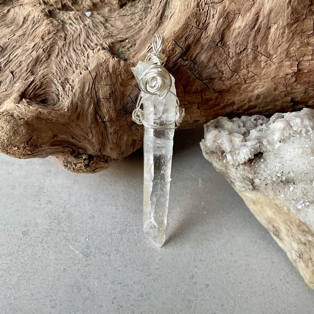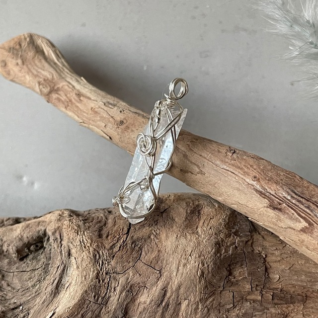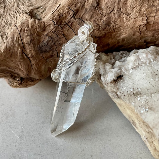 ヒマラヤクル渓谷産のナチュラルポイント1点ものをシンプルにワイヤージュエリーとしました。 可愛過ぎず、存在感のあるものになっています。 ヒマラヤより直輸入された、研磨されていない純粋なる天然のお石のため、1点ものとなっています。 インドヒマラヤクル渓谷産クリスタル ワイヤーを含め約4.0cm 簡易的な革紐かチェーンをお付けいたします。 *サイズは目安です。大体の大きさをイメージするのにお役立てください。 【注意事項】 *天然の物です。写真に写っていないクラックや、欠け、含有物等がある事は予めご了承ください。 *お客様都合による返品、返金対応は出来かねます。予めご了承ください。 *写真はなるべく、その石の個性が伝わるように努力しておりますが、イメージと違った等での返品、返金対応も出来かねますので、気になる点はご購入前にお問い合わせください。 *商品説明は、あくまで個人の主観でありイメージです。効果効能を保証するものでは御座いません。 *石は持つ人やタイミングにより感覚が異なりますので、商品説明を読み、ご自身の直感で“出逢いたい”と感じる石たちをお迎えください。