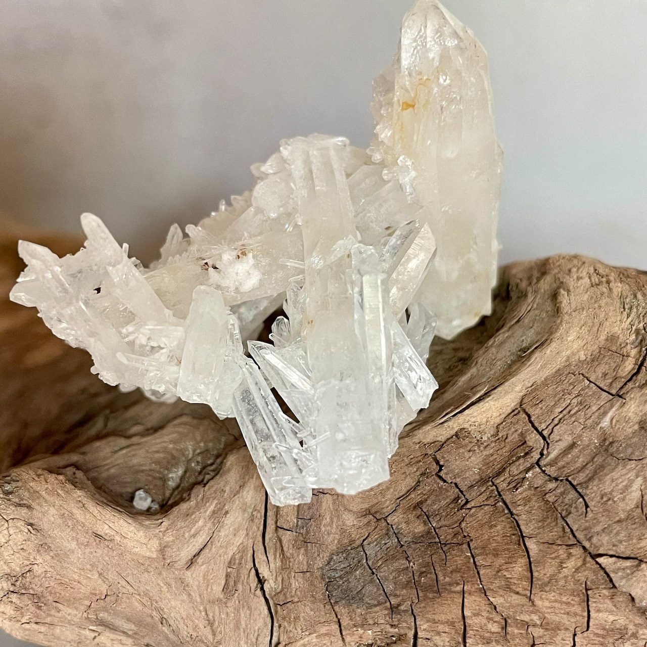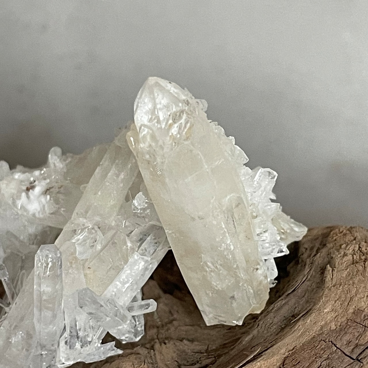 この大きなクォーツは、自分自身が生きてきた道のりや経験から成長してきた魂や精神を表し、付随した小さな結晶そこから得られた信頼や能力を表しているとされます。