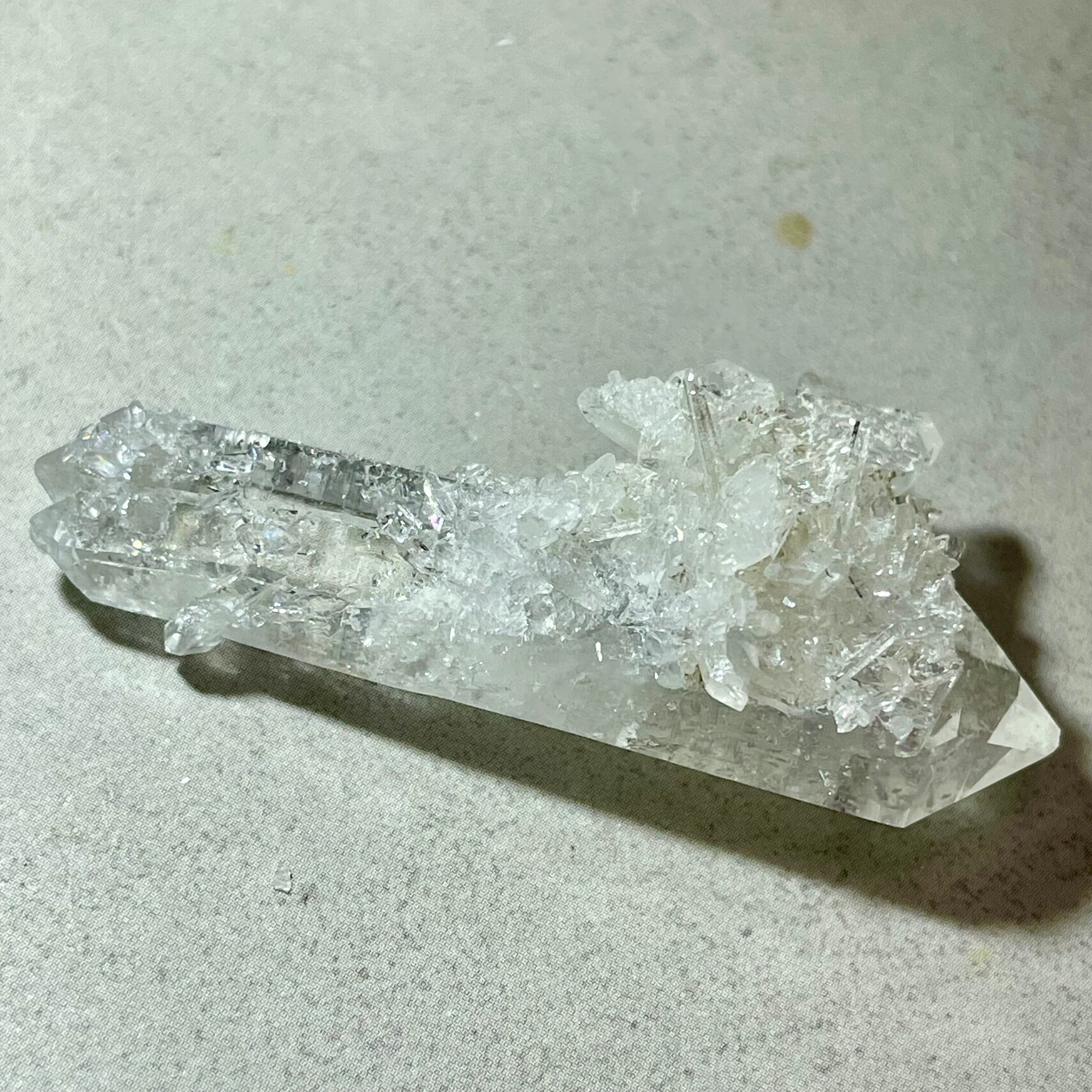 強い浄化能力を持つ水晶とされ、ポイントの片側から悪い気を吸収し、反対側のポイントから浄化した気を放出するといわれています。場の浄化をはじめとして、乱れた精神や感情の浄化にも効果を発揮するとされています。