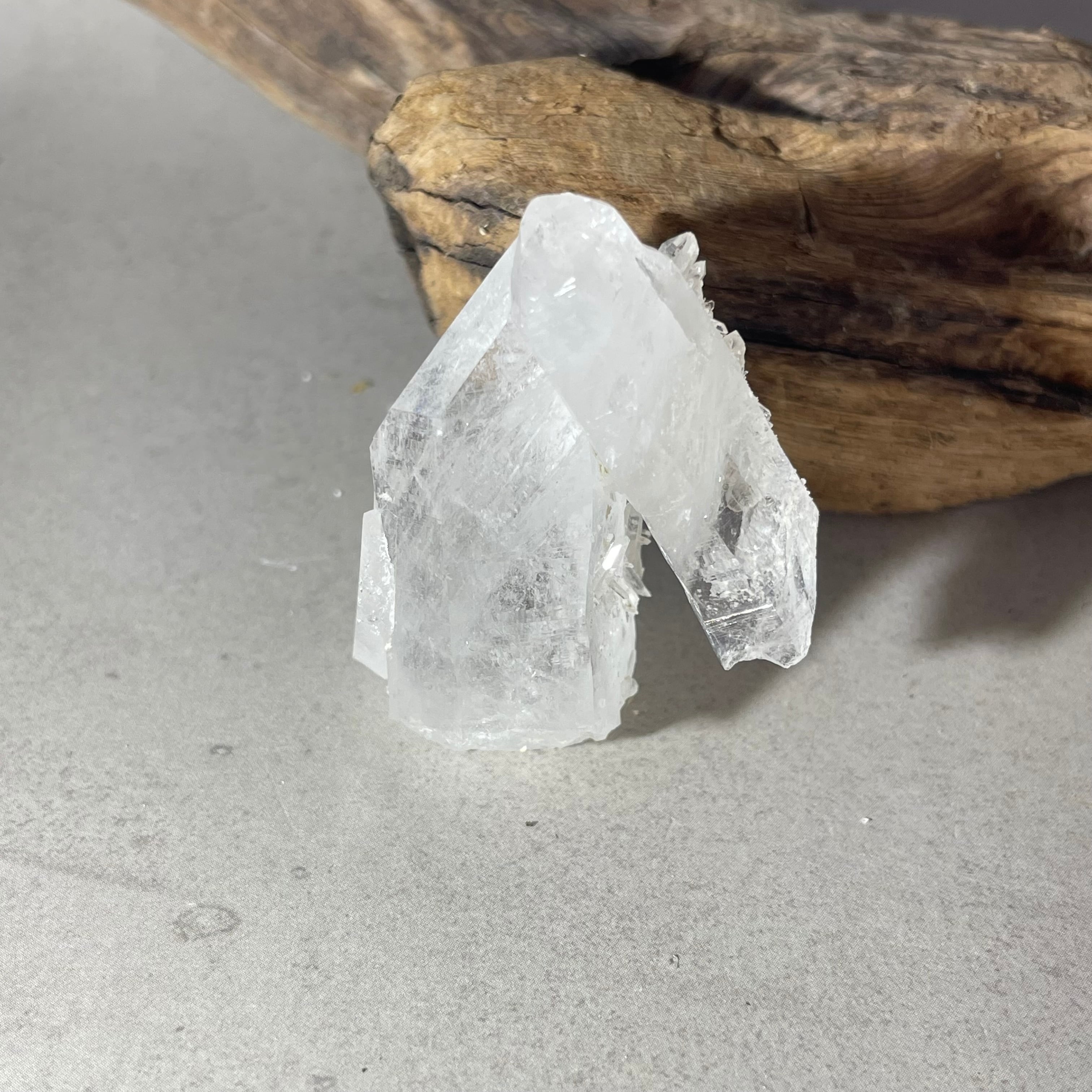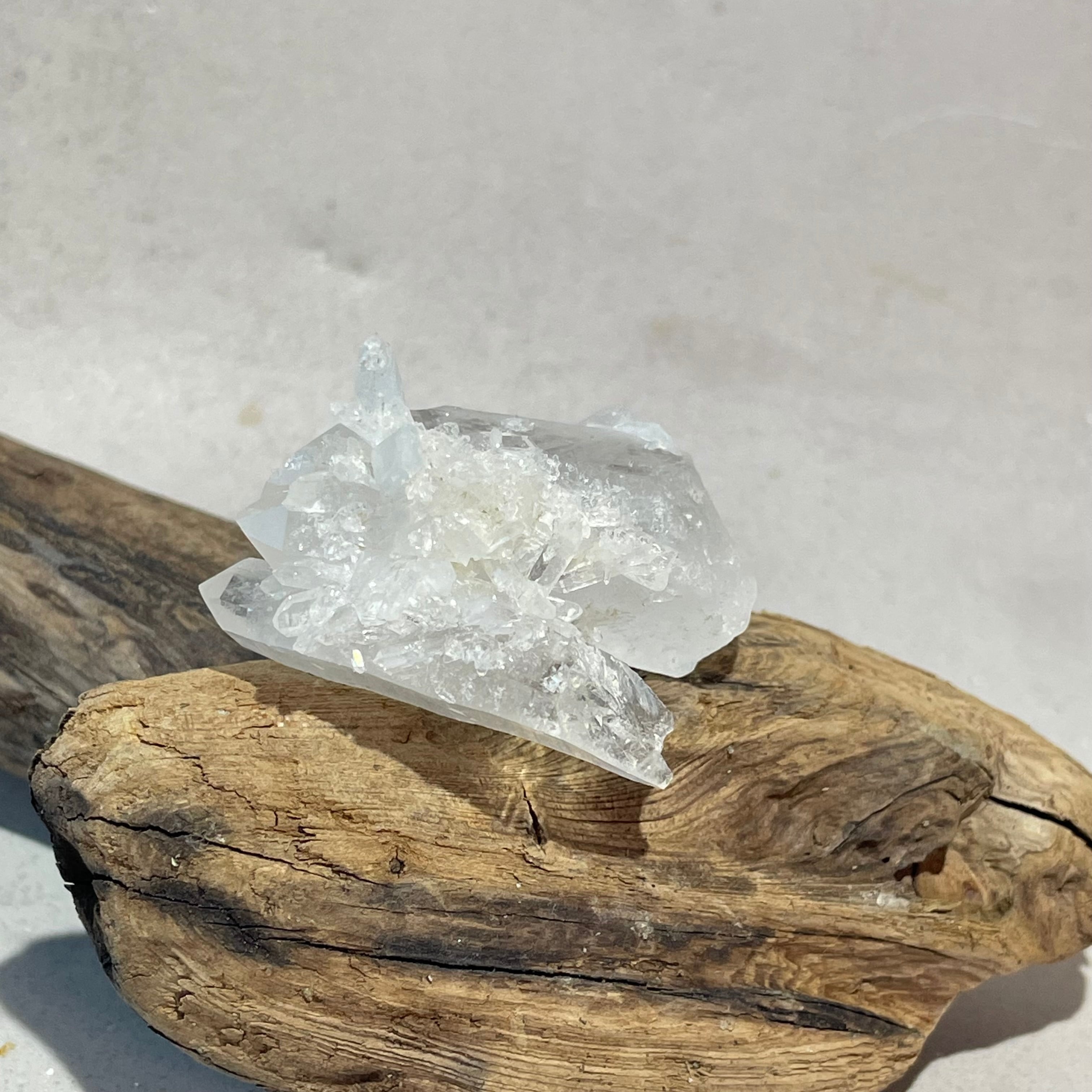 この大きなクォーツは、自分自身が生きてきた道のりや経験から成長してきた魂や精神を表し、付随した小さな結晶そこから得られた信頼や能力を表しているとされます。