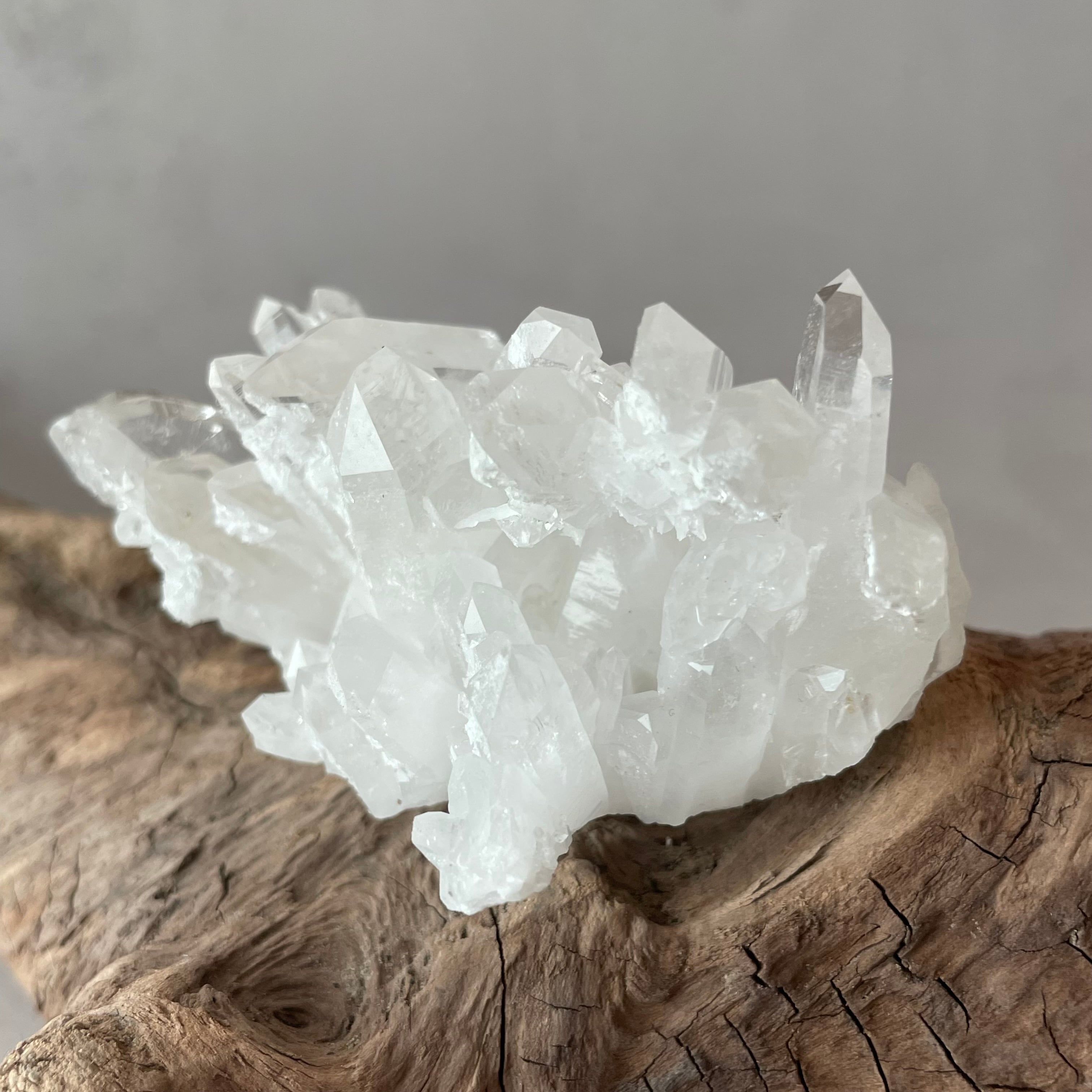 この大きなクォーツは、自分自身が生きてきた道のりや経験から成長してきた魂や精神を表し、付随した小さな結晶そこから得られた信頼や能力を表しているとされます。