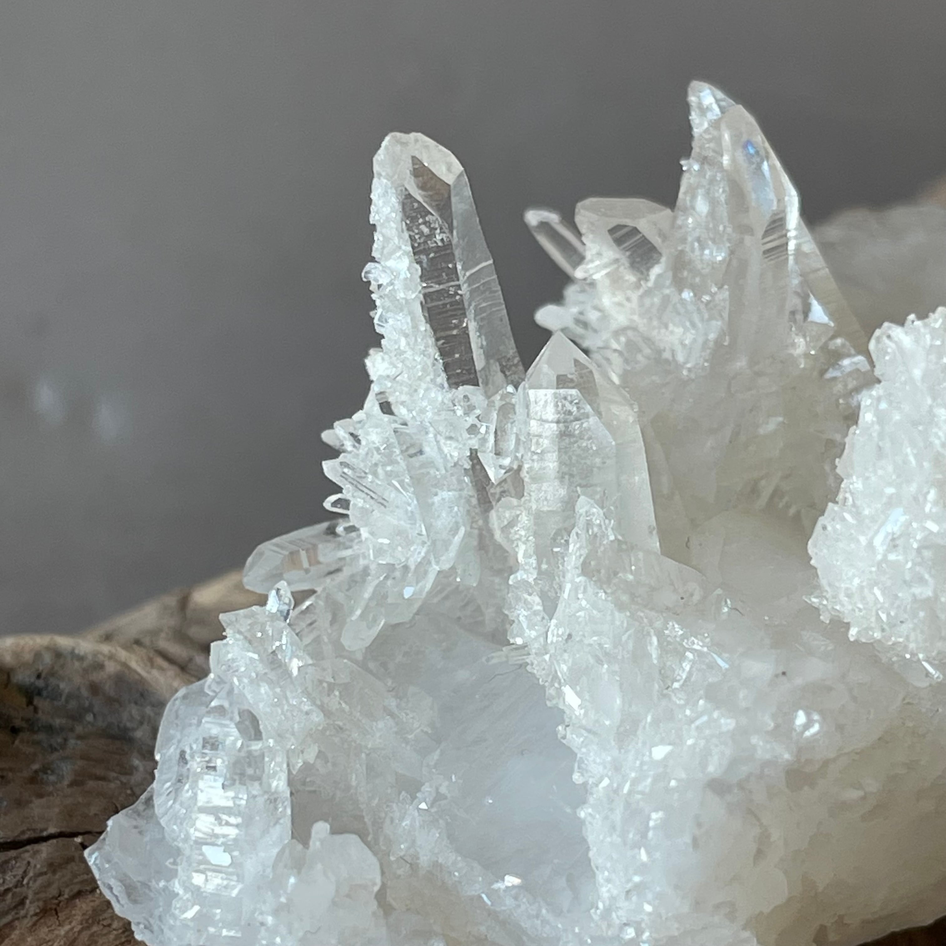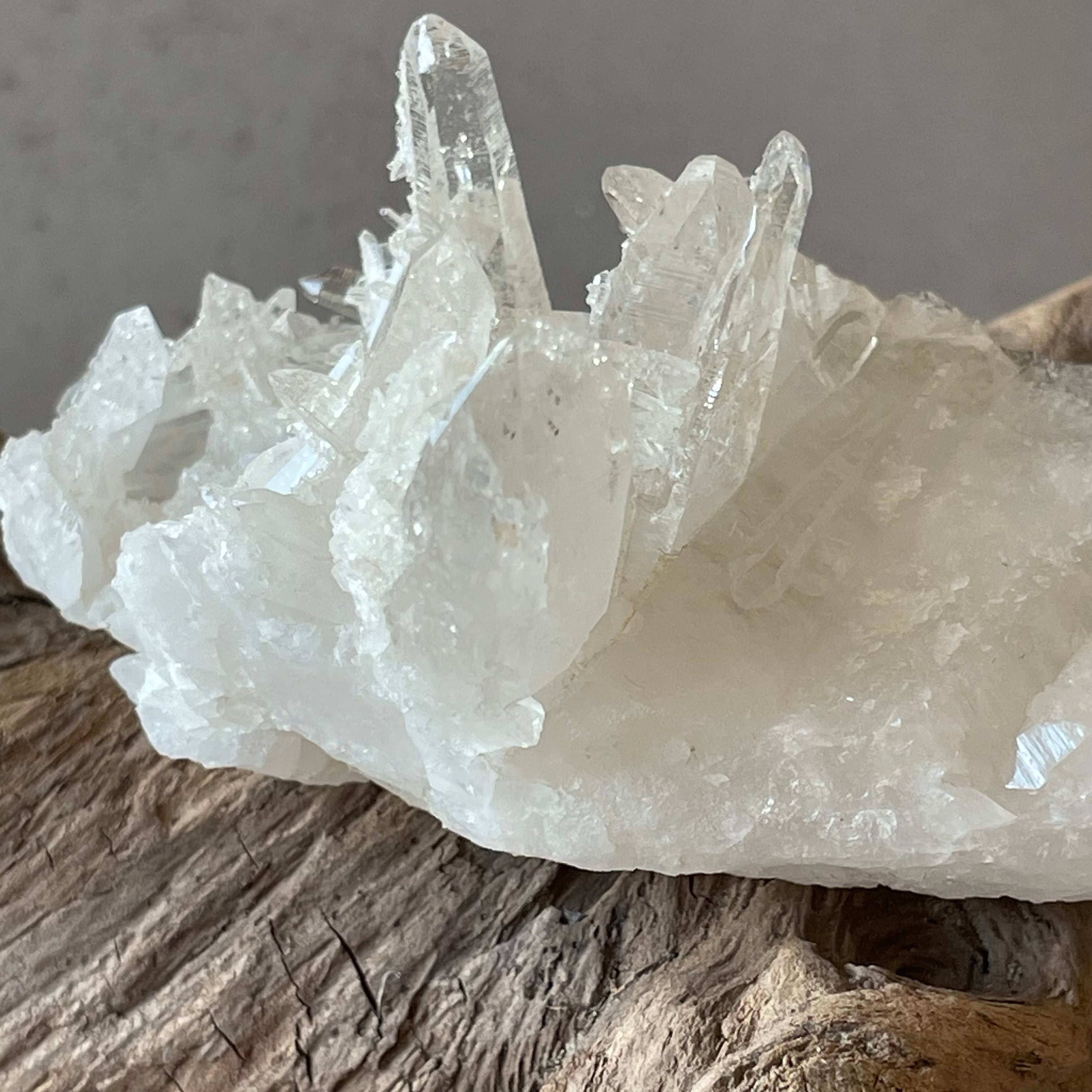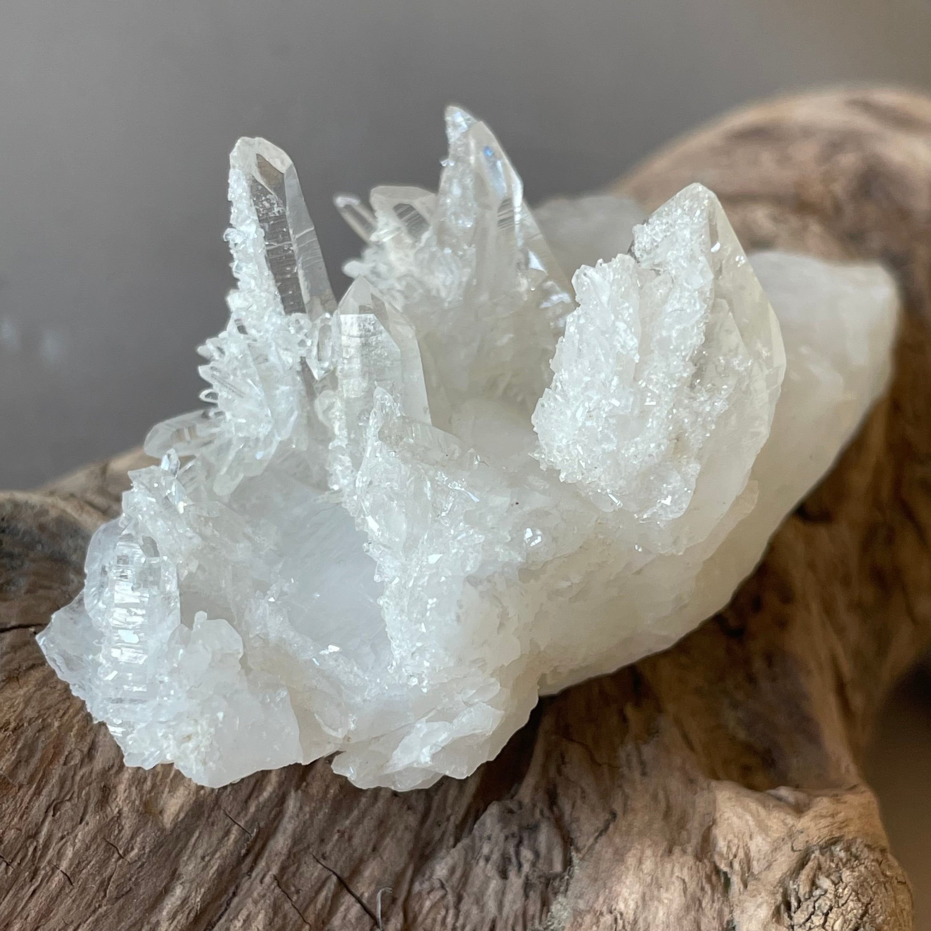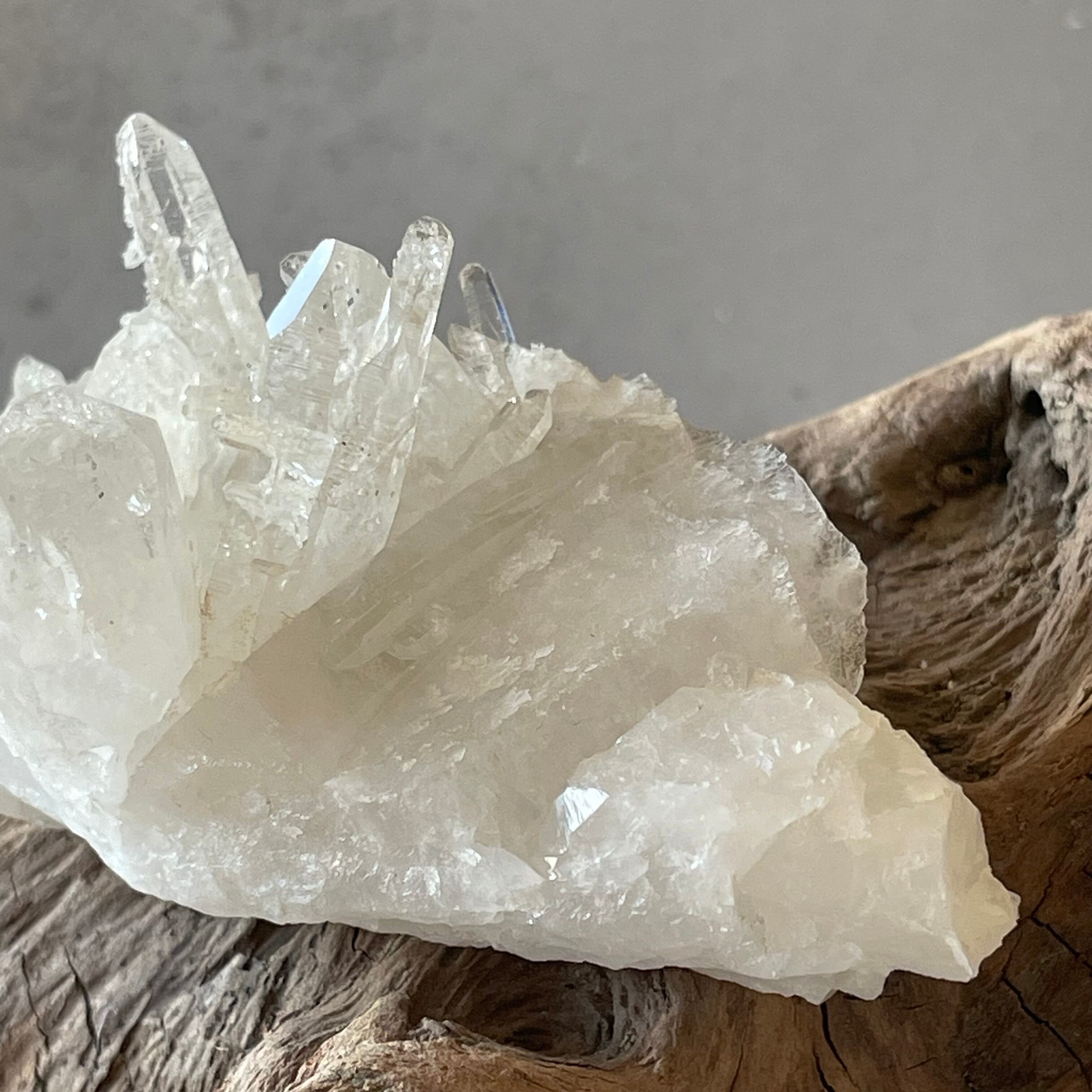 この大きなクォーツは、自分自身が生きてきた道のりや経験から成長してきた魂や精神を表し、付随した小さな結晶そこから得られた信頼や能力を表しているとされます。