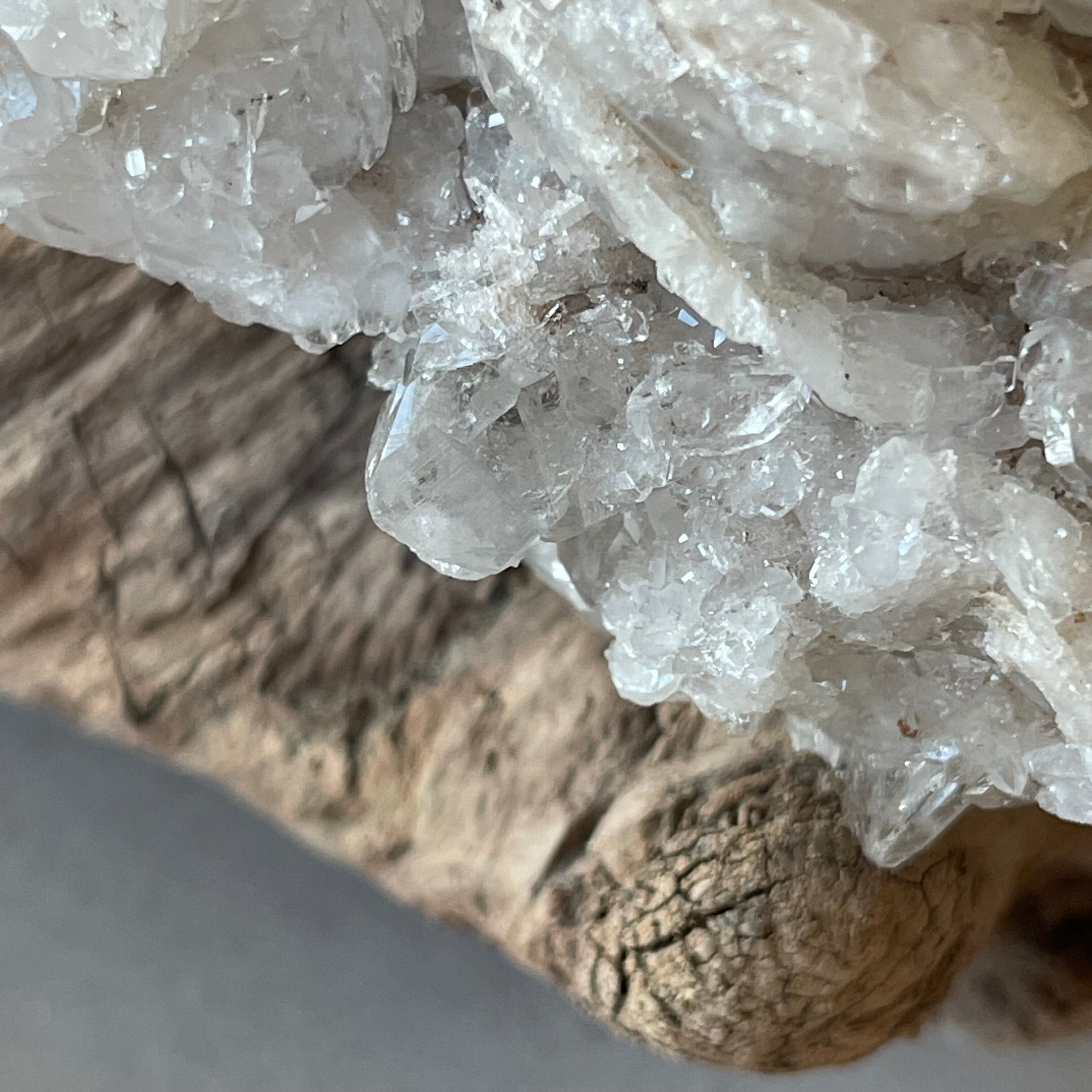 細かな結晶が折り重なり、所々空洞が見られ、中を覗くと中にもたくさんの結晶がみられます。