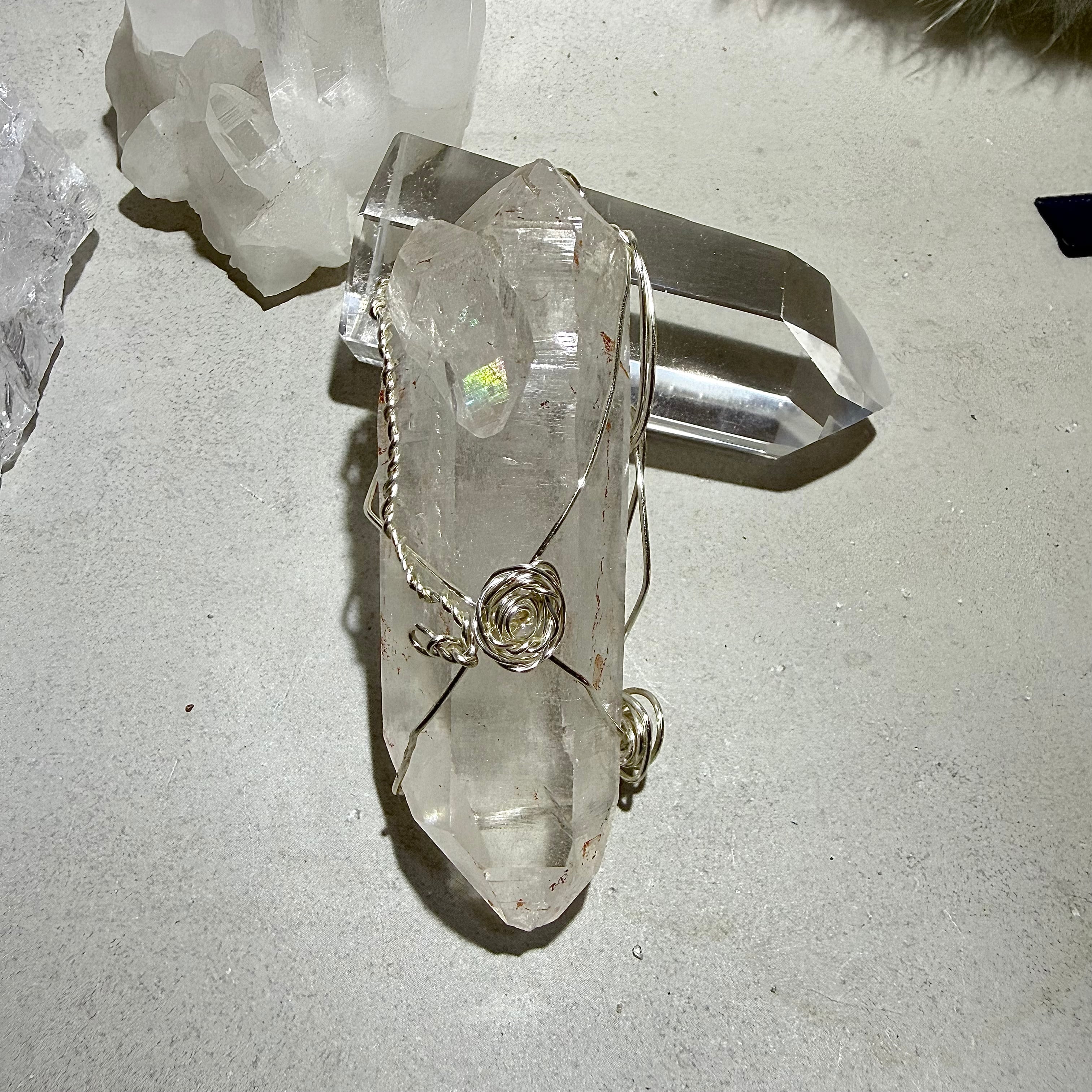 ヒマラヤクル渓谷産のナチュラルポイント1点ものをシンプルにワイヤージュエリーとしました。