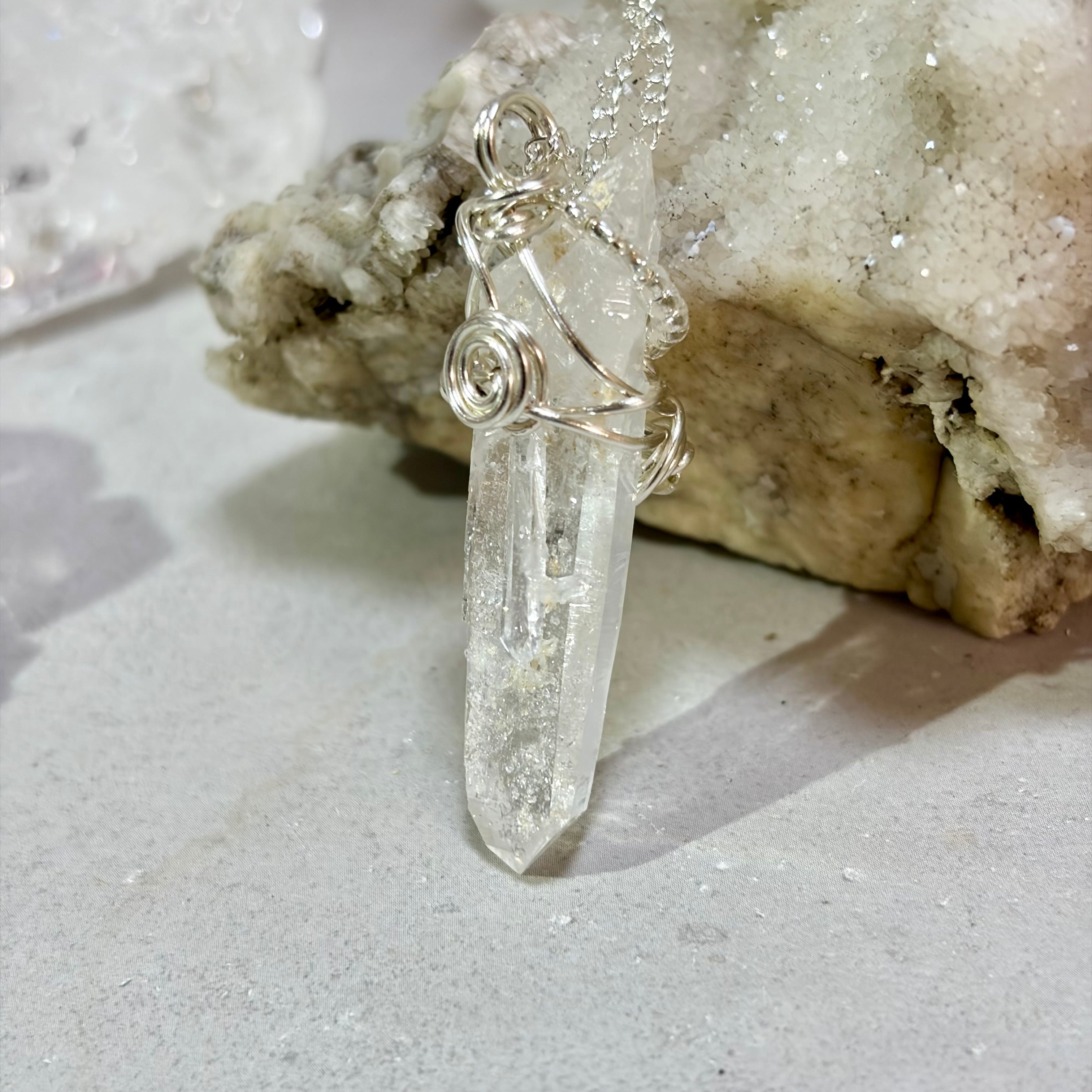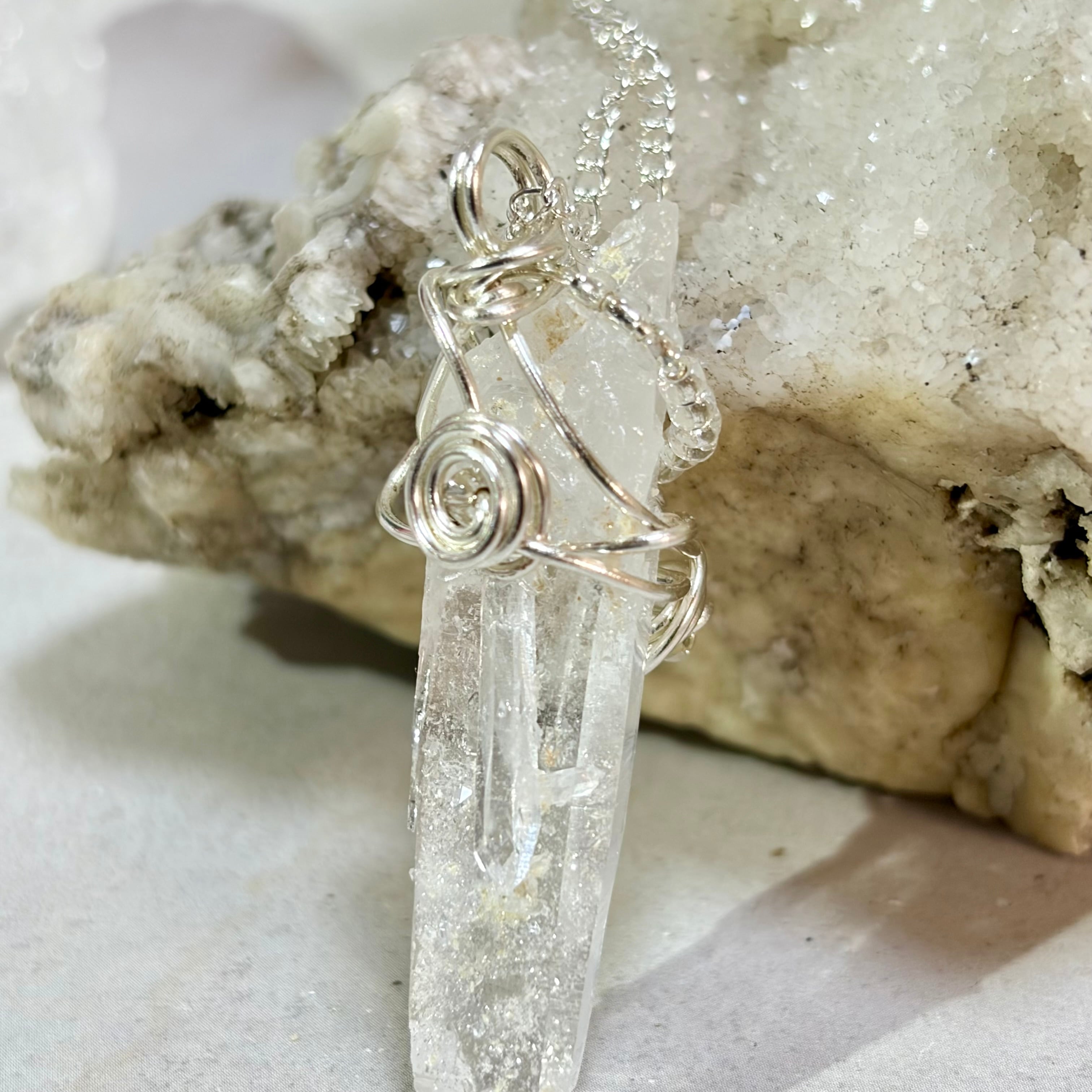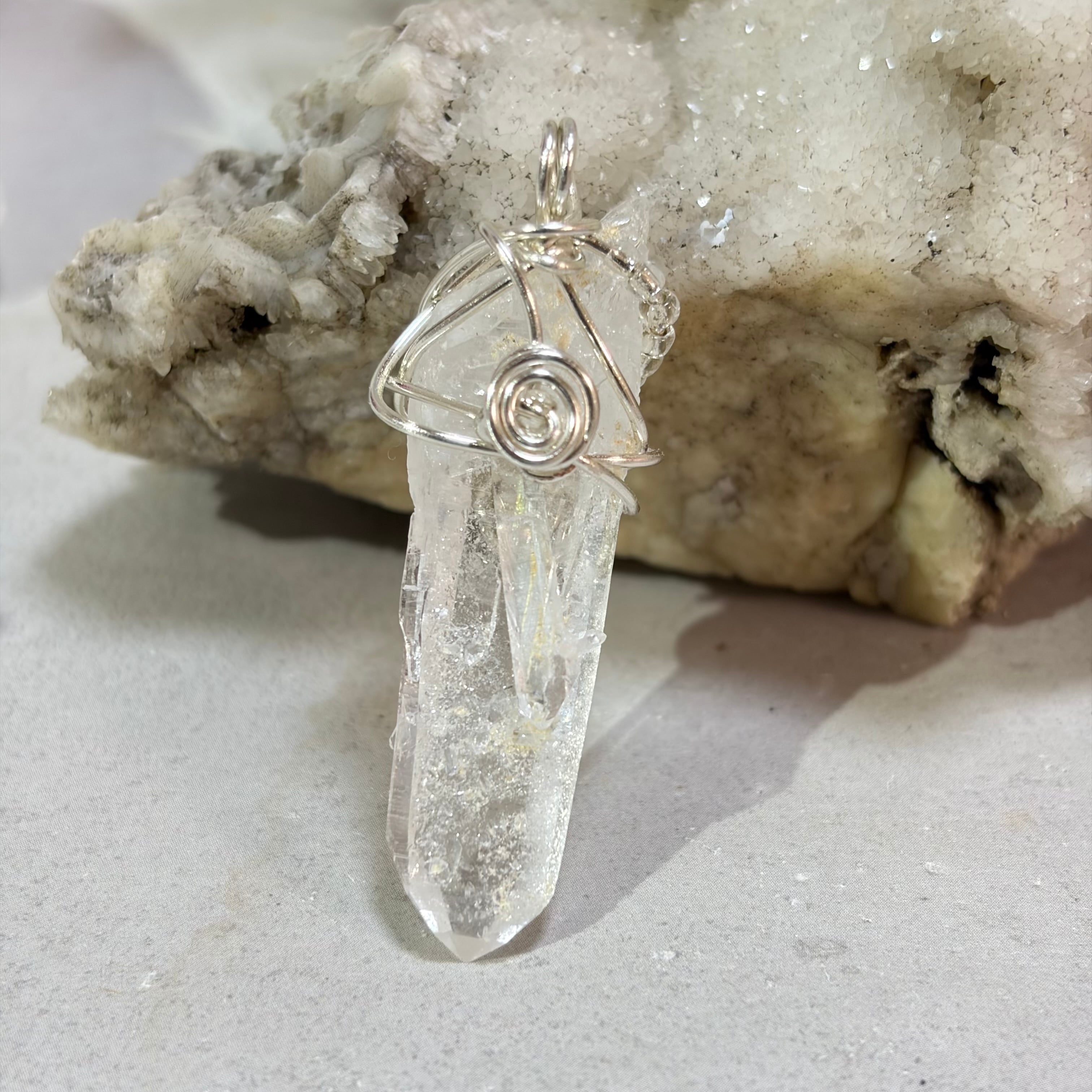 宮崎県西米良村産のナチュラルポイント1点ものをシンプルにワイヤージュエリーとしました。
